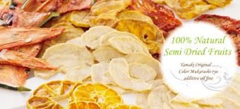 ヤマキ加工の「フルーツ農家のセミドライフルーツシリーズ」は減圧スローフード製法!すべて純国産素材で完全無添加!セミドライタイプのドライフルーツは市販のドライフルーツと違い、しっとりやわらかい食感が特徴です。生のくだものをイメージさせる、より自然な風味や食感を残しています。